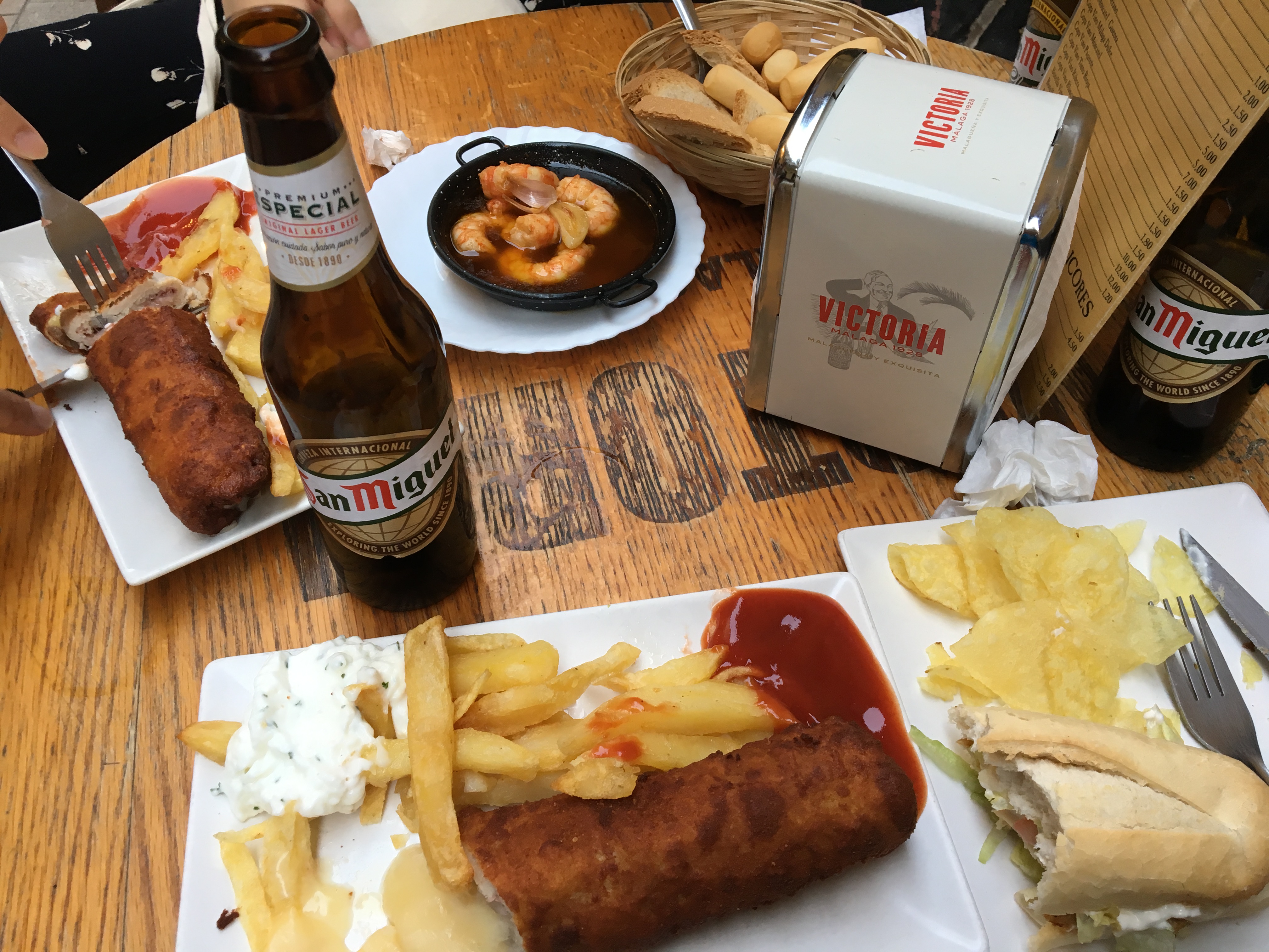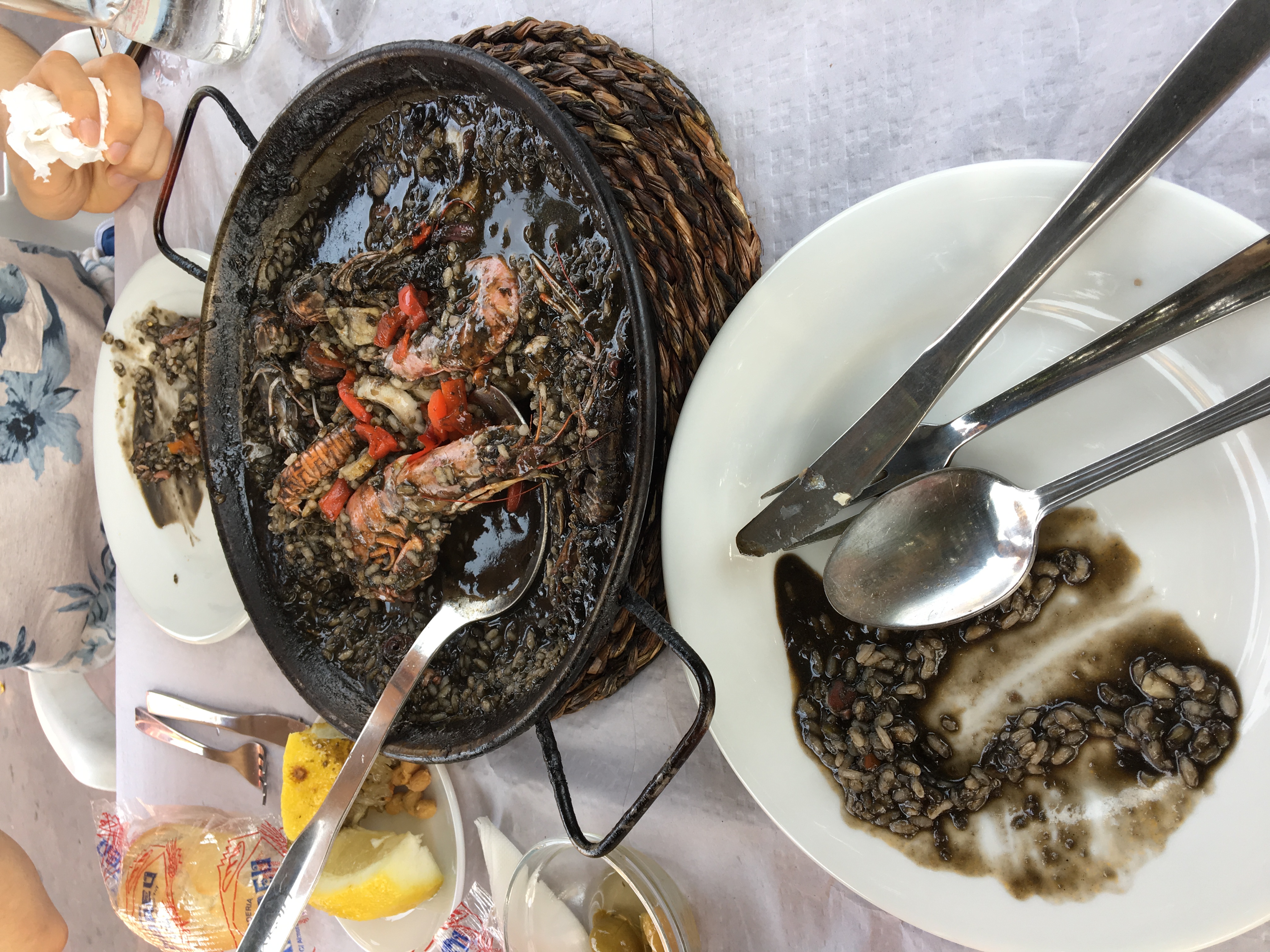 성도 둘러보고 친구랑 말라게따라는 해변에 놀러갔다 일단 놀기전에 밥부터! 금강산도 식후경, 우리는 먹물빠에야를 시켰는데 진짜 맛있었고 한가지 팁은 소금은 적게 아니면 아예 넣지말라고 해야한다. 안그러면 먹을 수 없을 정도로 짜고 같이 주는 빵은 뜯는 순간 추가비용 지불이다.